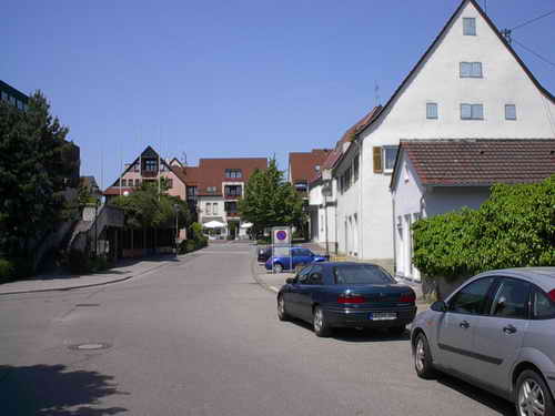 Das Haus Giek und das Milchhäusle (rechts) sind die einzigen noch alten erhaltenden Gebäude |